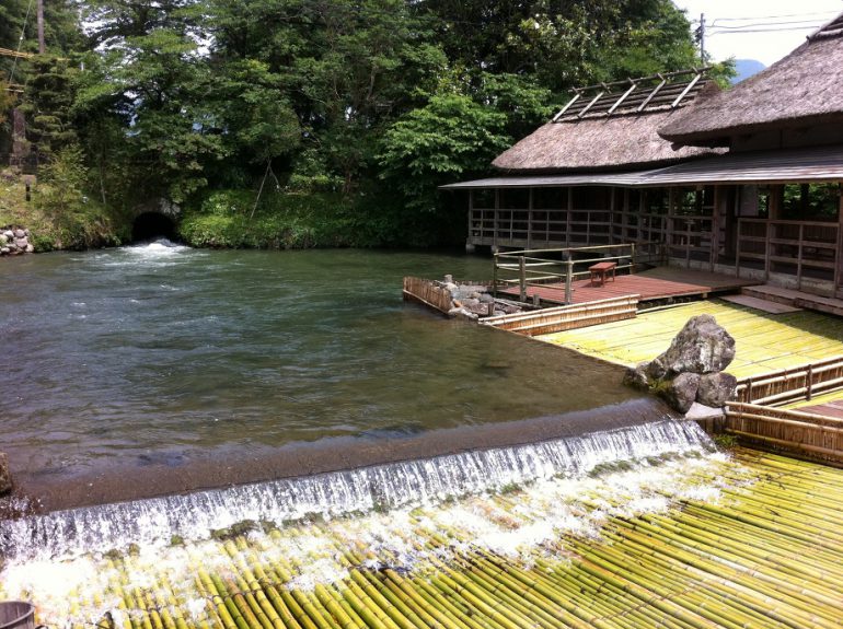 やな場に流れる水の音はとても涼しげで風情があり、とっても素敵なところでした。