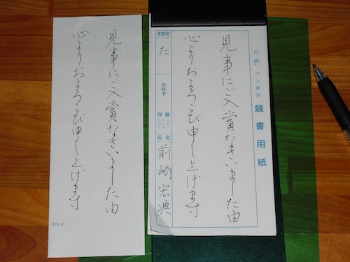 これまでの結果はと言いますと、ペン字が3級、書道が5級でした。