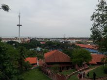フランシスコ・ザビエルのお墓がある丘の上から。 遠くに見えるのは、「マラッカ・タワー」です。
